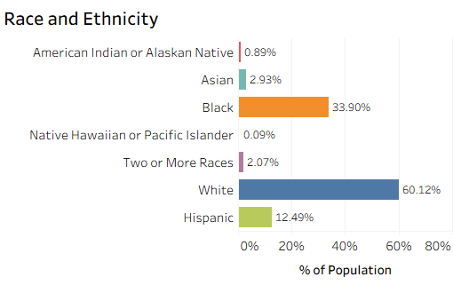 At the same time, associate degree attainment lags both the state and nation, and a meaningful share of residents have some college but no credential (21.2%). Strengthening degree completion, expanding technical credentials, and improving high school attainment will be critical to broadening opportunity and sustaining long-term economic growth.
