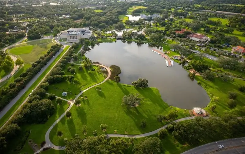 - Nature Play Areas for Children – Playgrounds integrated under live oaks with sand, water, climbing, and mist-play features, serving all ages and abilities